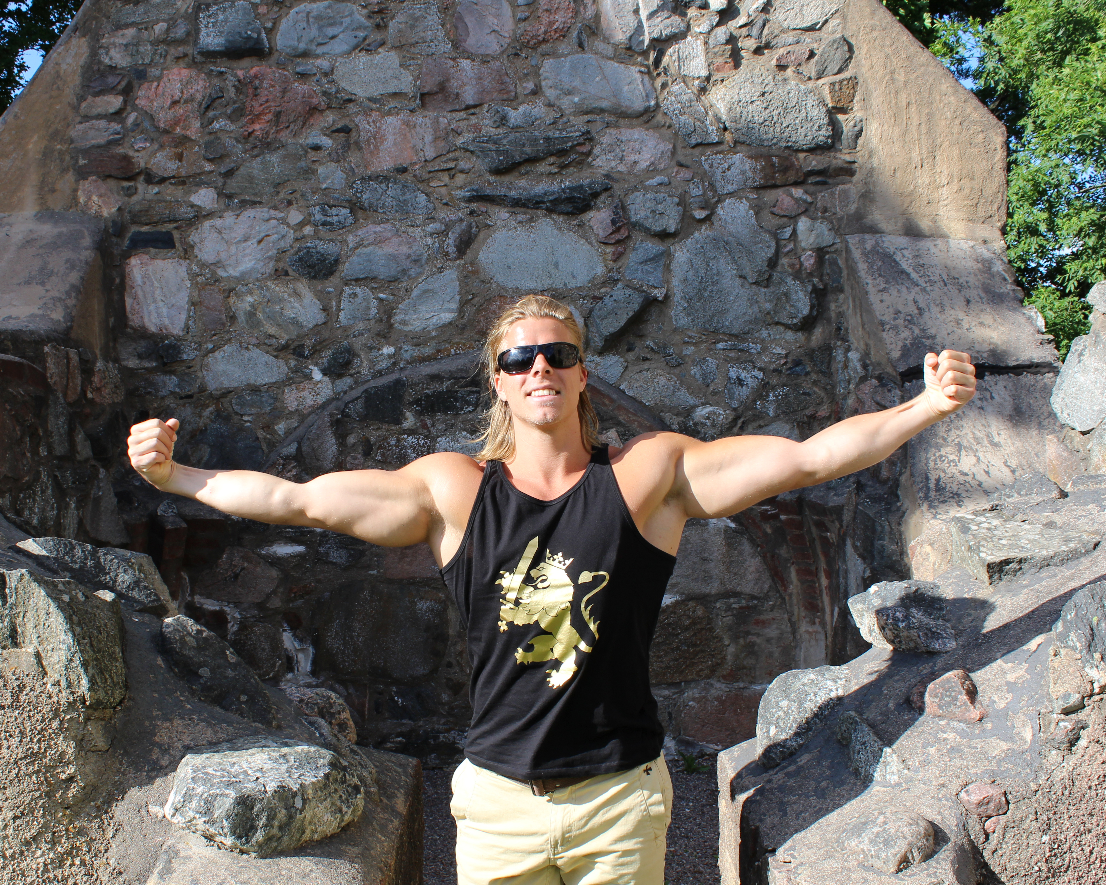 After a long wait the new Golden Lion Tanktop of Evropa is here. This has been in the works for quite some time. The difference between a stringer and a tanktop is that a stringer shows more skin and is in general more suited to prayers in the Temple of Iron. A tanktop is a bit more versatile and also more appealing to more people (more people in the sense; Metaphysical Crusaders for Mother Evropa, not just anyone who likes the design, more on that here).